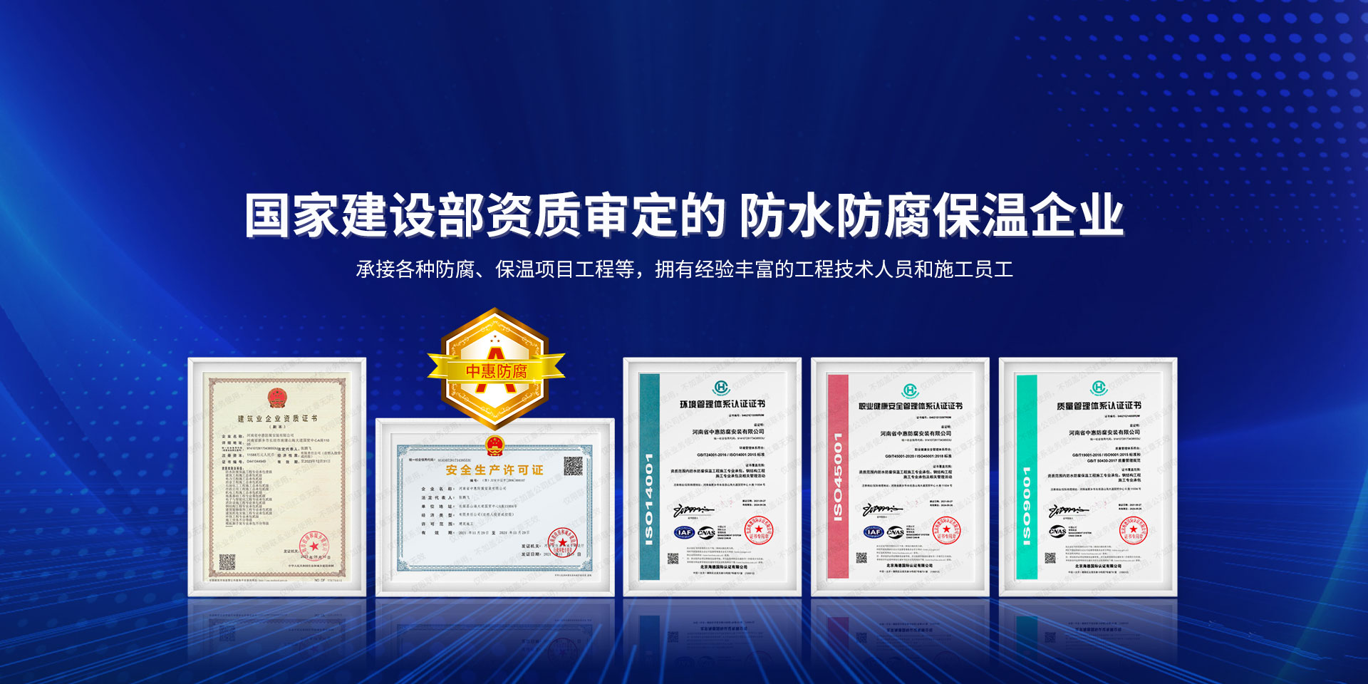 公司經營范圍:防水防腐保溫工程;消防設施工程;建筑裝修裝飾工程;建筑機電安裝工程;電力工程;建筑工程;石油化工工程;工業清洗工程;油罐清洗工程;鋼結構工程;環保工程;模板腳手架工程;電纜防火封堵、防污閃噴涂、外墻外保溫工程;各類施工勞務作業;設備維修、船舶鉚焊、涂裝;電力工程材料、建材、防水材料、防火材料、防腐保溫材料銷售,并相繼通過了GB/T19001-2008idtISO9001:2008GB/T50430-2007質量管理體系認證證書。GB/T24001-2004idtISO14001:2004環境管理體系認證證書。GB/T28001-2011idtOHSAS18001:2007職業健康安全管理體系認證證書。公司是中國防腐蝕于防護協會、中國施工企業管理協會、電力協會和中國鋼結構防水協會會員單位。 公司的經營業務涵蓋了石油、化工、電力、冶金、煤炭、船舶、國防、燃氣、水利、環保、交通運輸、航空及國防軍工和輕紡市政等行業的防腐保溫絕熱設備。鋼結構安裝、防火、防水、金屬噴鍍、聚脲噴繪、陰極保護、防滲透堵漏、玻璃鋼及各種磚版材料襯里、橡膠襯里、煙氣硫和耐酸溶劑腐蝕等工程施工。公司連續十年榮獲“省市先進施工企業”“安全生產先進單位”“重合同,守信用企業”和“AA***資質企業”的稱號。2000年被命名為市級文明單位,2002年被國家工商行政管理局命名為“重合同,守信用的企業”、被中國工業防腐蝕技術協會命名為“防腐蝕企業,能源節約及環境保護領域有豐富的經驗和***的業績。工程一次交驗合格率100%。其中攀枝花鋼鐵公司煉鐵廠四號高爐及熱風爐防腐工程、上海寶鋼公司煤氣柜防腐工程、撫順石油一廠裝置防腐項目、齊魯石化公司稀烴廠高塔防腐工程、吉林化學工業公司煉油廠油罐防腐工程、天津石化熱電廠六號爐頂棚聯絡管保溫工程、大慶油田(太倉)力神泵業工程、中國化學工程第十一建設工程、中原油田勘探局工程、中國石化銷售有限公司華北分部、魯皖輸油管道工程、貴州開磷息烽合成氨工程、陜西黃陵煤化工程、中國石油天然氣西部管道塔里木輸油工程、邯鋼集團邯寶鋼鐵公司煉鐵工程、德州供電工程、吉寶(南通)船廠工程,偃師華潤熱力工程、鄭州熱力總公司。 河南省中惠防腐安裝有限公司愿以豐富的施工經驗,***的技術,***的設備,***的管理,***的服務,竭誠為國內外廣大的用戶提供***滿意、******的工程作品。 我公司愿與國內外同仁一道,團結協作,共同推進防腐蝕行業發展! 公司地址:河南省長垣縣建設路北段360號 固定電話:0373-8866488 郵編:453400 網址:http://www_zhff_com_cn.chwsly.com
